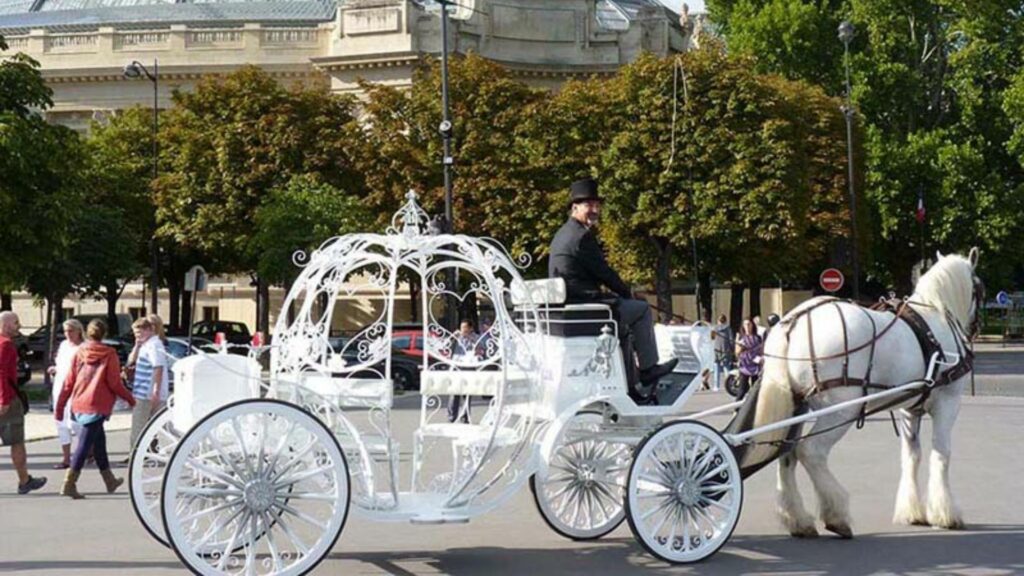 Parcourez les rues pavées de Paris dans une calèche tirée par des chevaux. Une manière élégante et vintage de créer une ambiance romantique pour votre demande en mariage.