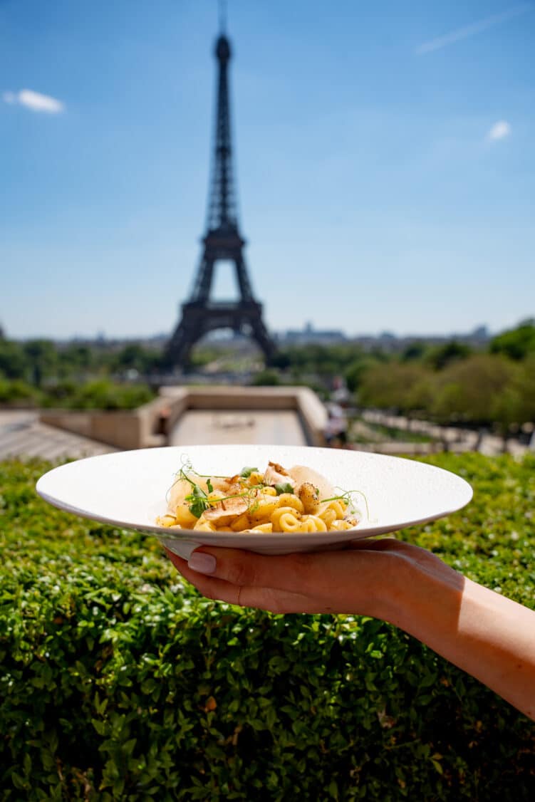 Du déjeuner au dîner, chaque moment possède sa propre énergie. À midi, la lumière inonde la salle et invite à savourer un repas élégant, rythmé par la vie parisienne. En après-midi, le lieu se prête à une parenthèse douce, entre café gourmand et conversation. Puis vient le soir, quand Paris s’illumine : la terrasse devient le théâtre d’instants rares, où les coupes de champagne se mêlent aux éclats de la Tour Eiffel.