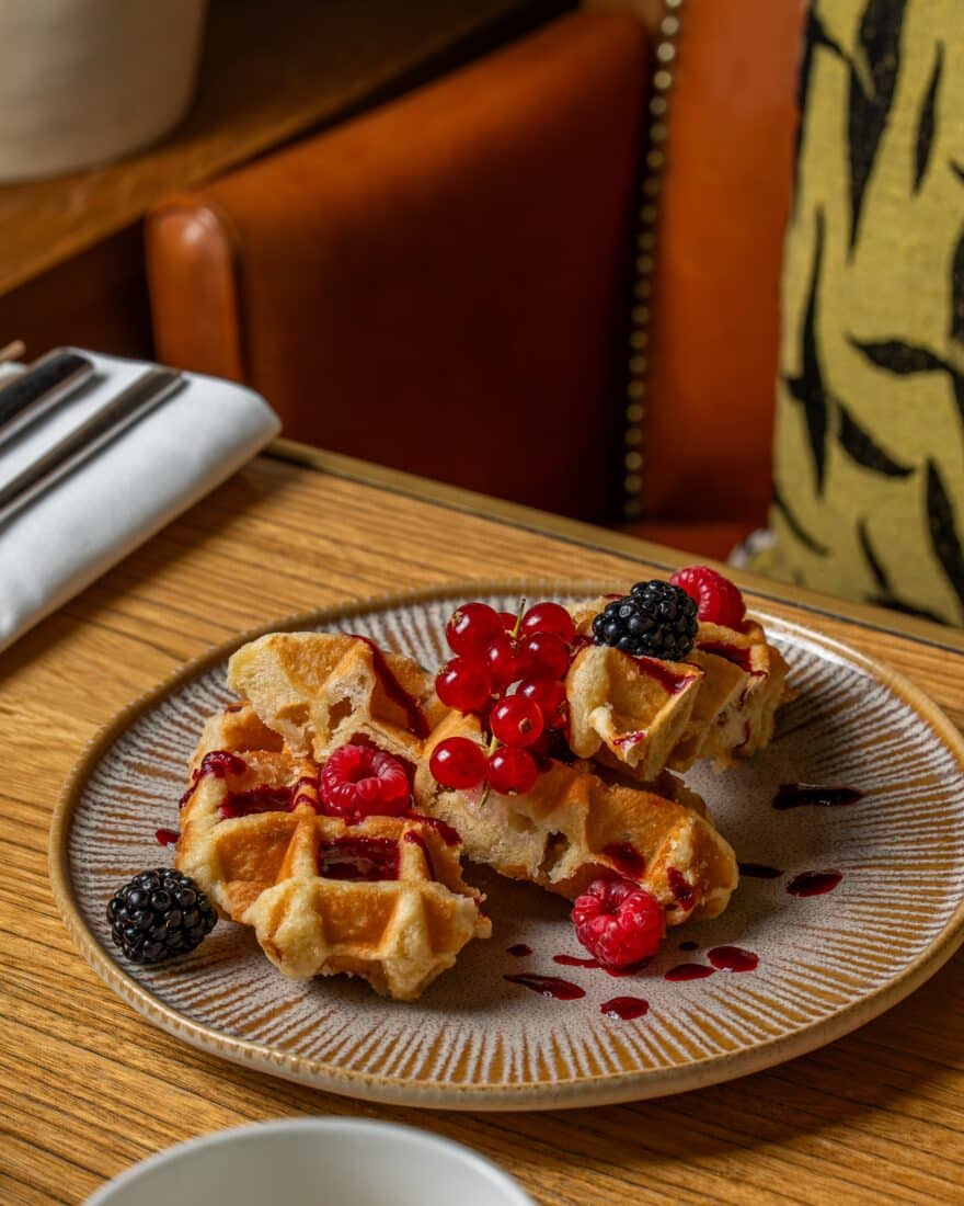 Dans le Triangle d’Or, Frivole transforme le dimanche en un véritable rituel chic et gourmand. De 12h à 15h, le chef Nathan Kessous propose un brunch signature, végétal et raffiné, imaginé en collaboration avec Alpro. Granola maison, skyr nature, avocado toast avec œuf poché, croque Frivole truffé au lait de soja et açaï bowl aux fruits du jour composent une carte surprenante. Les desserts comme la gaufre coco-chocolat, chantilly au lait de coco, prolongent l’expérience.