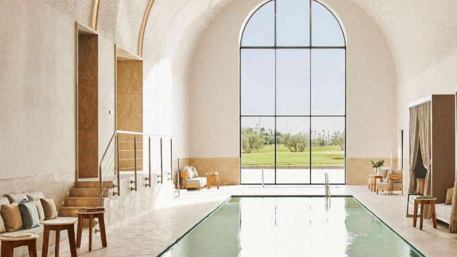 Le Park Hyatt Marrakech s’étend sur un vaste domaine. Chaque espace a été conçu pour allier confort, intimité et esthétisme. Les jardins luxuriants, ponctués d’arbres centenaires et de bassins d’eau scintillants, offrent des promenades apaisantes et des coins de quiétude. Tandis que les piscines, à la fois intimes et majestueuses, invitent à la détente sous le soleil de Marrakech. Le spa du resort, véritable sanctuaire de bien-être, propose des soins sur mesure inspirés des traditions locales. La combinaison hammams, massages et rituels de relaxation est un hymne au bien-être,dans un cadre élégant et contemporain.