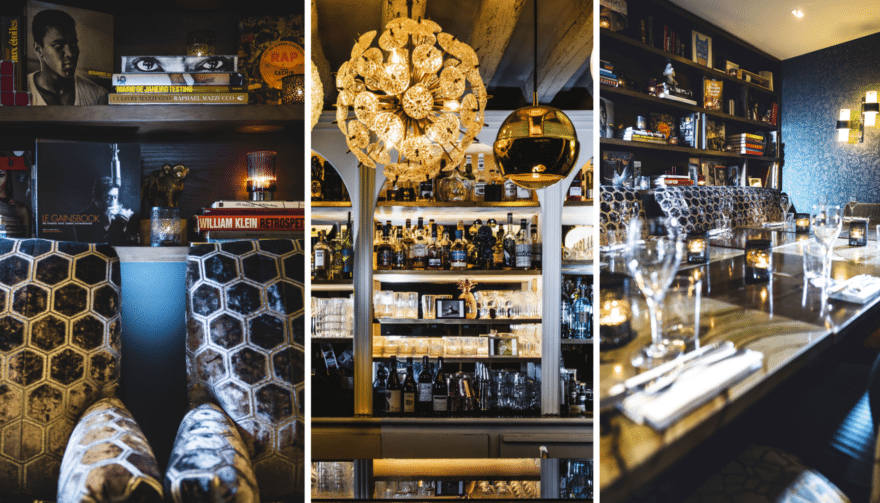 Ici, la scénographie raconte une histoire. Bois patiné, velours profond, lumières tamisées, touches graphiques et esprit Gainsbourg en filigrane, Pamela Popo respire la personnalité, le raffinement, la convivialité teintée de mystère. Au rez-de-chaussée, le bar impose son allure feutrée, idéal pour un cocktail parfaitement exécuté avant le dîner. À l’étage, l’ambiance se fait intime, presque secrète, pensée pour les conversations confidentielles, les rendez-vous avec enjeu, les dîners à fleur de velours. Du premier toast à la dernière coupe, on glisse doucement vers une atmosphère parisienne assumée : élégante, sensuelle, légèrement irrévérencieuse.