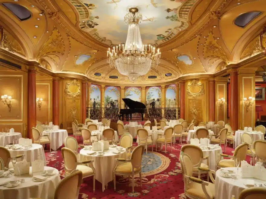 Dès l’entrée, l’ambiance du Ritz séduit par son raffinement et son style ultra léché. Le hall principal, avec ses lustres majestueux et ses sols en marbre, transporte immédiatement le visiteur dans un autre temps. Les salons invitent à la détente, à la lecture ou à un thé entre amis. Le soir, l’atmosphère devient magique, idéale pour un cocktail ou un dîner élégant. Les murmures des conversations se mêlent au doux son du piano. Chaque détail est pensé pour créer une expérience mémorable, où luxe absolu et sérénité cohabitent parfaitement. Séjourner au Ritz, c’est ressentir une atmosphère unique, où chaque instant est une célébration du style et de l’élégance.