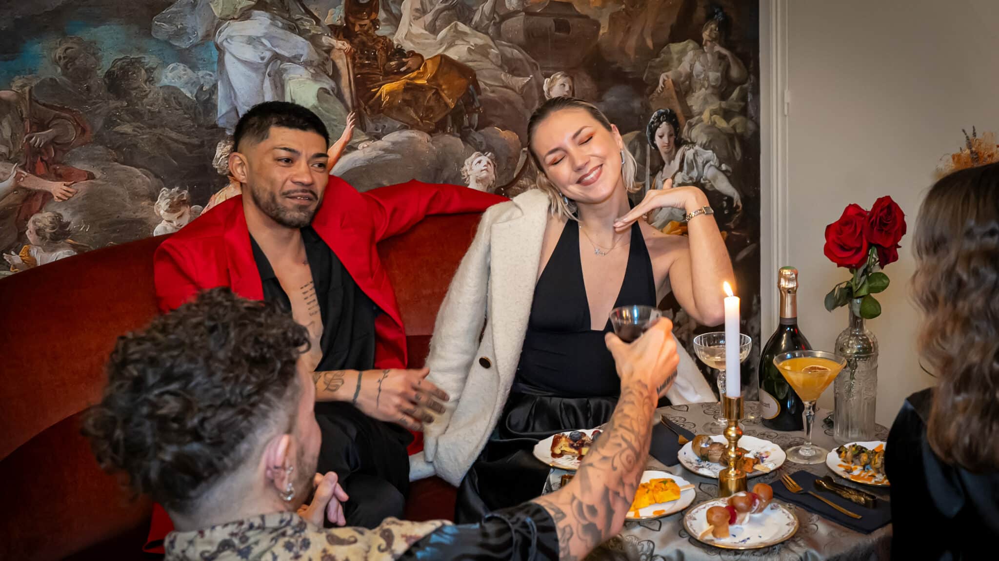 Canapés de velours, éclairages tamisés, miroirs anciens… Le décor évoque un boudoir parisien où l’on s’attarde plus que prévu. Que ce soit pour un date chic, un dîner en duo ou une soirée complice entre amis, l’atmosphère joue la carte de l’intime. Le concept fait mouche : on se laisse porter par les surprises, le plaisir de goûter, de partager… et parfois de rire.