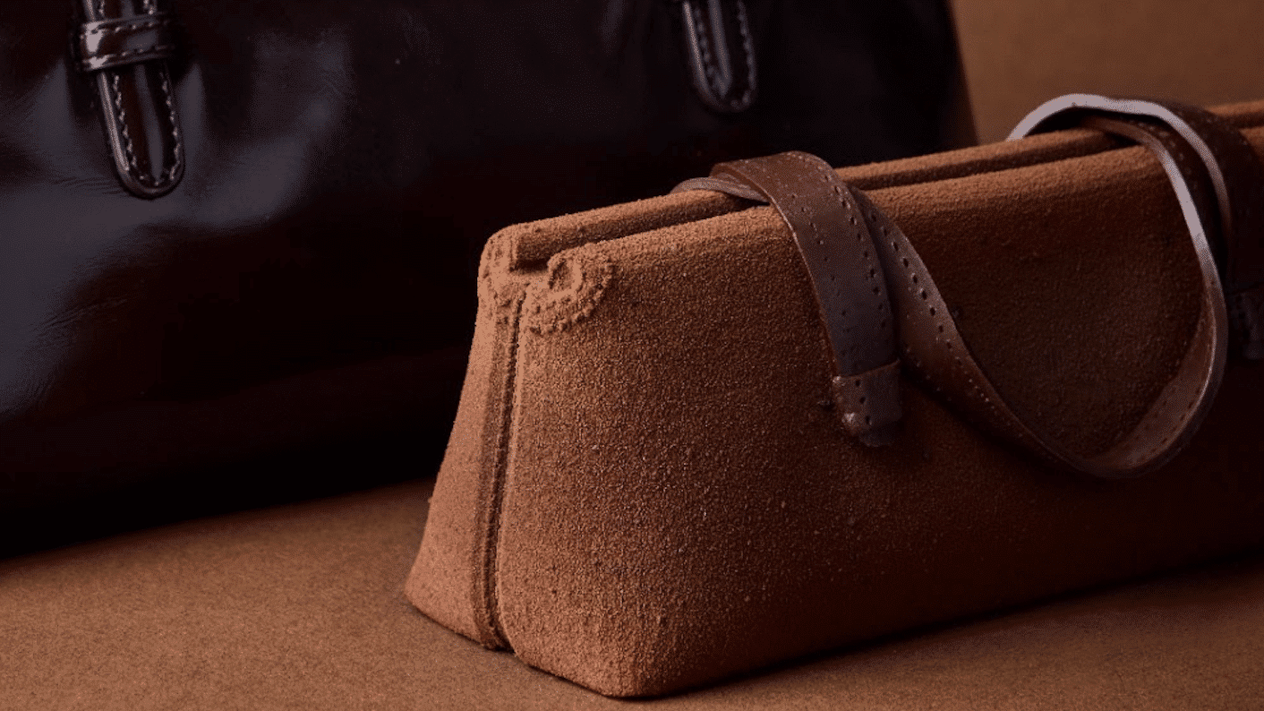 Quand la mode s’invite à table, cela donne une bûche de Noël qui fait sensation. Pour les fêtes 2025, Angelina collabore avec la marque parisienne Rouje, fondée par Jeanne Damas, pour créer une bûche trompe-l’œil en forme de sac 90’s, véritable hommage à l’élégance à la française.
