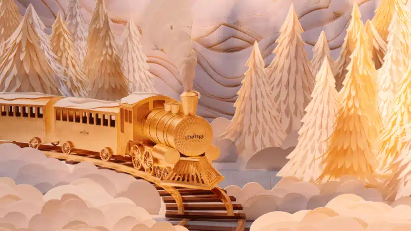 Pour Noël 2025, Lenôtre fait rêver petits et grands avec sa bûche de Noël spectaculaire : Le Train des Merveilles. Imaginée comme un convoi doré traversant une forêt enneigée, cette création évoque un univers féerique digne des plus beaux contes d’hiver.