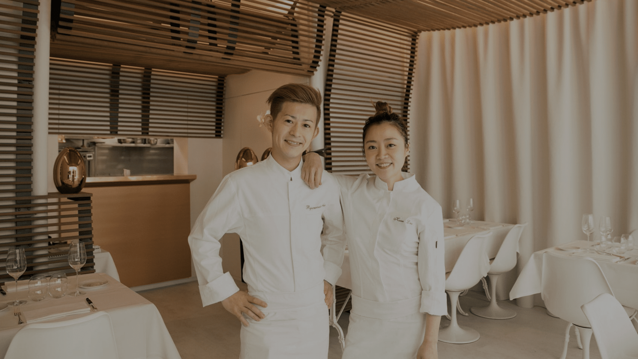 Derrière la grande baie vitrée de la rue de l’Exposition, la salle ressemble à un cocon clair : lattes de bois, drapés crème, quelques tables seulement, dressées avec un soin presque joaillier. On chuchote plus qu’on ne parle, les verres tintent doucement, la lumière glisse sur les assiettes. Ici, tout est affaire de mesure. Une atmosphère qui ressemble à ses maîtres de maison : Ryunosuke Naito et Kwen Liew, duo franco-japonais et malaisien formé dans les grandes maisons parisiennes, récompensé par une étoile au Guide Michelin depuis 2018.
