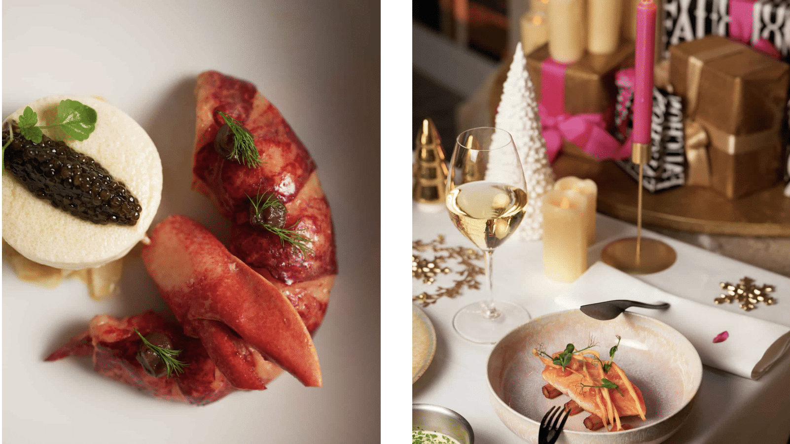 Le comptoir fruits de mer (huîtres, caviar, homard bleu) installé à l’extérieur prolonge les festivités tout au long du mois de décembre, dans une atmosphère de fête conviviale et raffinée.
