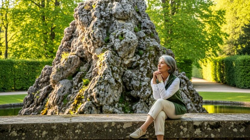Au cœur des jardins du Petit Trianon, un repli de pierre intrigue et apaise. Le Rocher du Trianon offre une halte discrète, entre ombre, mousse et murmures du parc. Ainsi, la promenade prend un autre rythme, plus attentif.