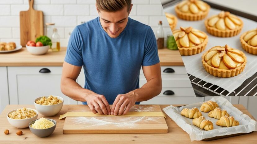 Avec la pâte, façonnez des palmiers sucrés: sucre semoule, pliage, repos 10 min au froid, cuisson 12–14 min à 190°C. Aussi, un filet de miel au sortir du four apporte de la brillance.
