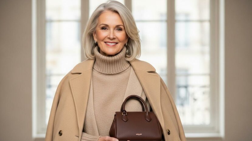 Aussi, un sac Demellier chocolat apporte une note profonde et subtile à l’ensemble. Cette pièce structure un manteau ton sur ton, sans alourdir l’allure ni l’épaule.