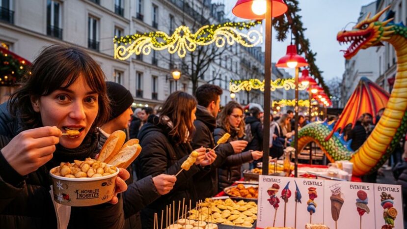 • Gourmandises : bao, nouilles, raviolis, brochettes, et stands sucrés selon arrivage.