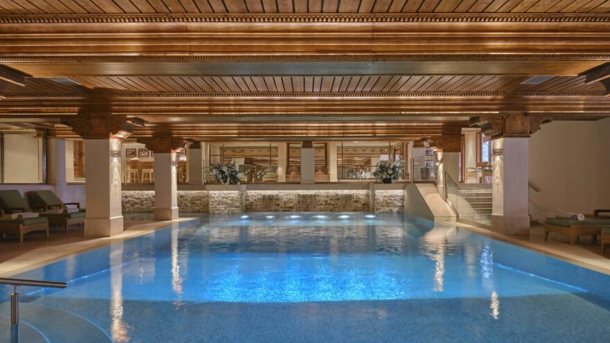 L’Airelles Courchevel, Les Airelles se démarque par son spa d’exception signé La Mer, avec sa piscine intérieure et son bain à remous. L’établissement renferme également un restaurant, une salle de sport et un beau bar, où vous pourrez siroter des cocktails après une longue journée sur les pistes…