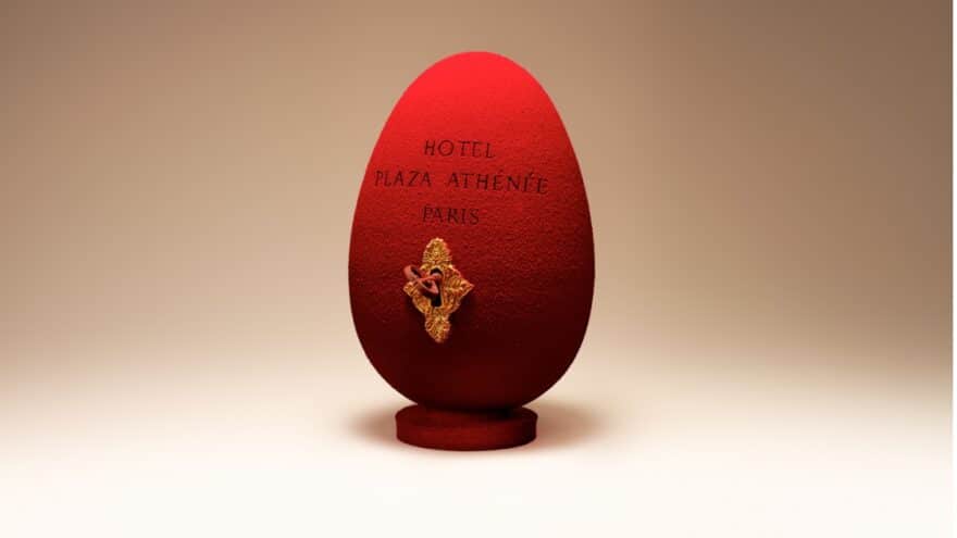 Pâques au Hôtel Plaza Athénée : les chefs Angelo Musa et Elisabeth Hot incarnent l’esprit du palace avec « L’Œuf aux Clefs d’Or »