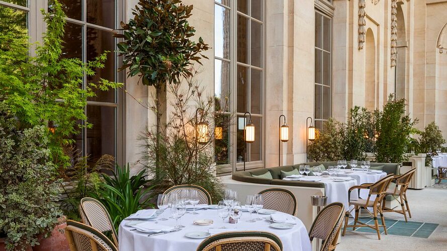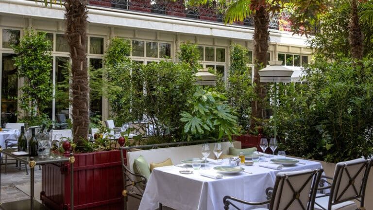 Au cœur du palace, cette terrasse parisienne prend la forme d’un jardin secret. Verdure luxuriante, calme absolu, cuisine raffinée… une parenthèse rare qui figure parmi les plus belles terrasses de Paris pour un déjeuner à l’abri des regards, dans une atmosphère propice à un déjeuner confidentiel.