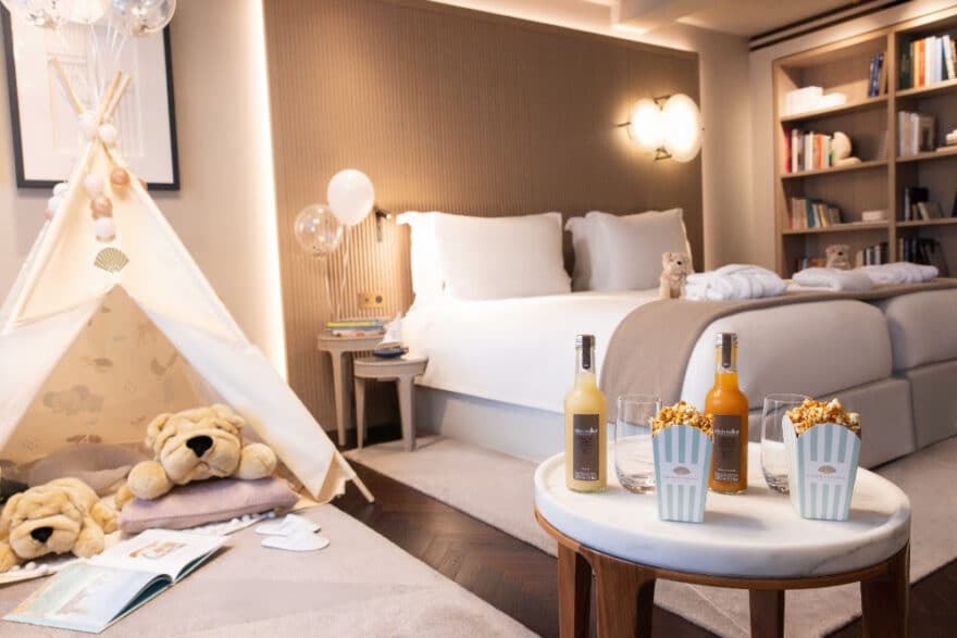 Le palace parisien déploie une attention particulière pour les familles depuis 2026. La Deluxe Family Suite de 80 m² accueille confortablement parents et enfants au cœur de Saint-Germain-des-Prés. Cette suite spacieuse dispose de deux chambres avec lits king size convertibles en lits jumeaux.
