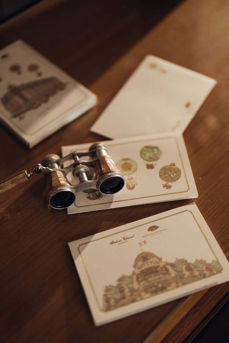 La rencontre entre L’Atelier Choux et le Mandarin Oriental Lutetia donne naissance à une série d’illustrations sur mesure créées par l’artiste suédois Mattias Adolfsson. Au cœur de cette collection, une illustration malicieuse représente la façade historique du Lutetia, entourée des montgolfières emblématiques de la marque parisienne. Ces ballons aériens s’ornent de motifs inspirés directement des décors de l’hôtel.