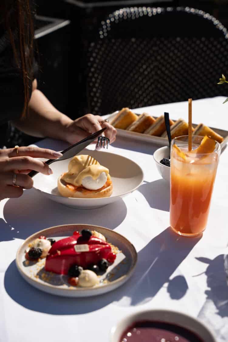 Le cœur du moment se joue dans le choix du plat. Les œufs se déclinent sous toutes leurs formes, dont une version bénédicte délicatement nappée, tandis que l’avocado toast s’étire sur une tranche parfaitement toastée. Plus gourmand encore, le club sandwich ou le croque-monsieur rappellent une cuisine de plaisir, précise et assumée.