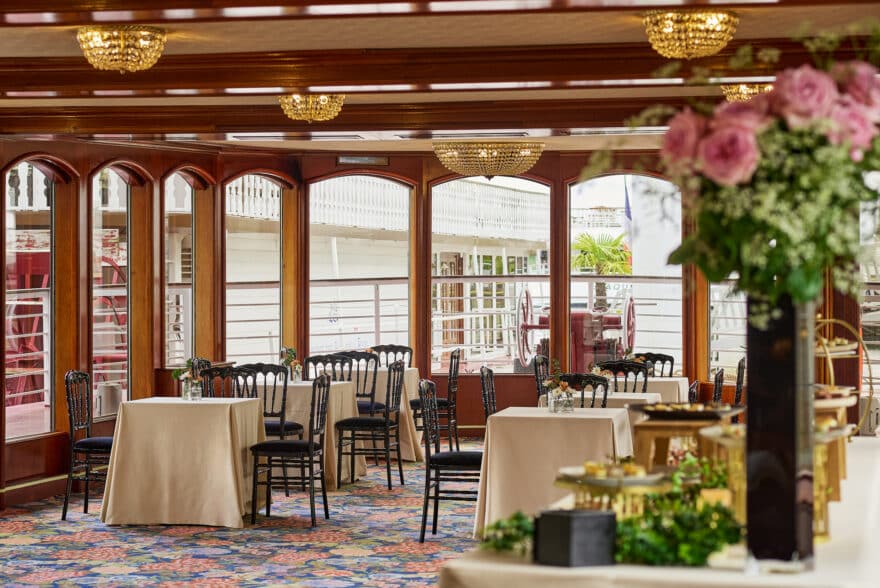 With four emblematic boats – Mississippi, Tennessee, Héméra and River Palace – the company offers a variety of settings. Each is capable of accommodating small groups as well as large receptions.