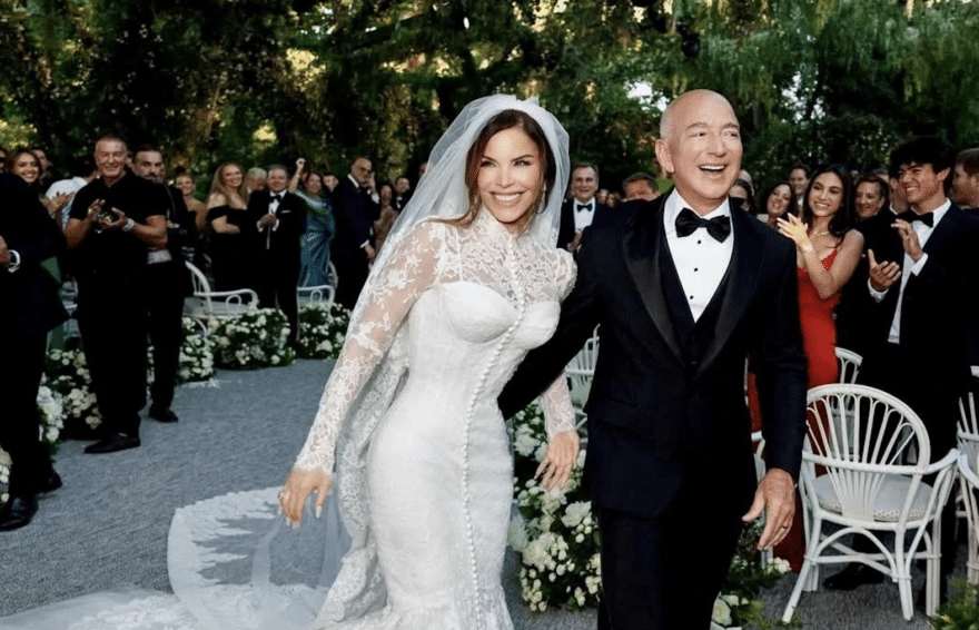 The couple celebrated their union in June 2025 at a lavish ceremony on the island of San Giorgio Maggiore in Venice. Lauren Sánchez wore a corseted lace Dolce & Gabbana gown, while Jeff Bezos sported an elegant black suit. The event, which lasted several days, was marked by ultra-glamorous haute couture outfits. The Hollywood-style staging and grandiose festivities attracted the attention of celebrities and media from all over the world.