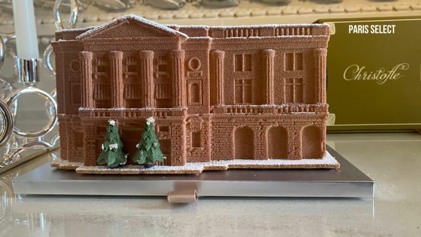 At the heart of this collaboration is Pastry Chef Matthieu Carlin ‘s exceptional creation, inspired by Christofle’s Malmaison Impériale motif. The log features a miniature version of the palace’s majestic façade, framed by two white chocolate fir trees. Gourmet and regressive, it unfurls an architecture of flavors where Madagascar vanilla mousse marries with almond and speculoos praline crunch, while apple compote and a soft cookie complete this refined composition. The result is a log that is both precise and generous, combining the elegance of Crillon’s heritage with the chef’s contemporary signature.