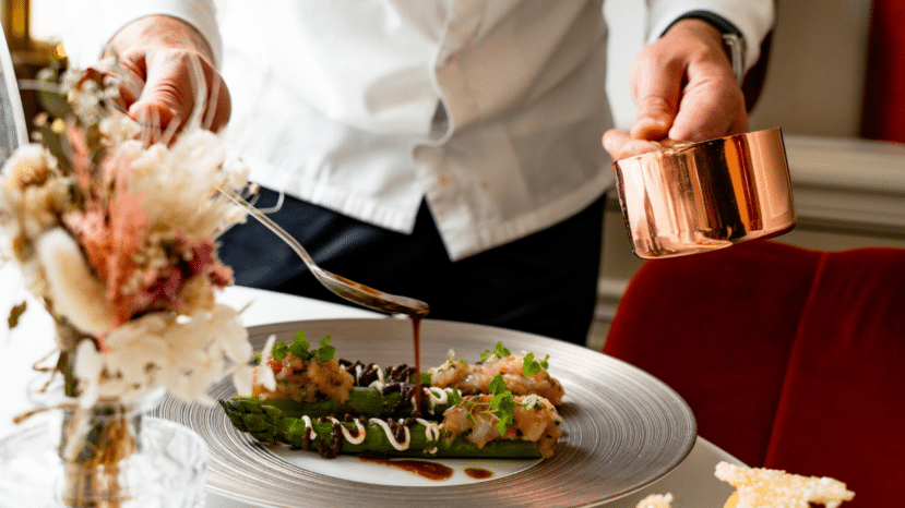 At the helm, Grégory Gbiorczyk breathes new life into Céladon. A former chef at Christian Constant’s Violons d’Ingres, then Executive Chef at the Cercle de l’Union Interalliée for over 13 years, he combines classicism and audacity with precision. Trained in pastry-making, he never forgets sweetness, even in savory dishes. In 2023, he will head up the kitchens at Le Molitor Paris, before making his mark at Le Céladon.