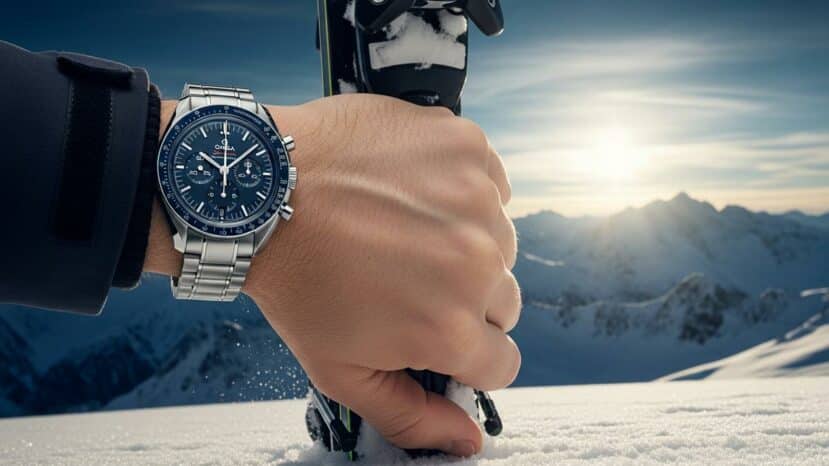 Also bear in mind the temperature variations between indoors and outdoors. On the other hand, don’t over-tighten the strap in the middle of winter. In addition, rinse the watch with fresh water after contact with dirty snow. In short, keep a microfiber handy to preserve the shine.