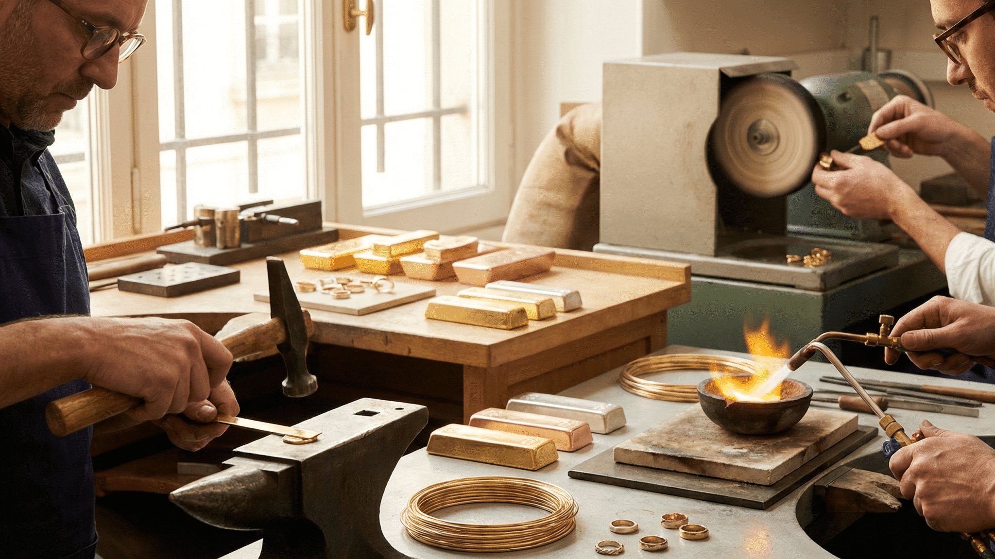 The story begins with simple gestures: melting, hammering, polishing. In every luxury jewelry workshop,gold is the undisputed leader. Yellow, pink, white: gold is available to illuminate every creation. Over 2,000 tonnes of gold are used every year for jewelry alone, confirming its central status in the industry.
