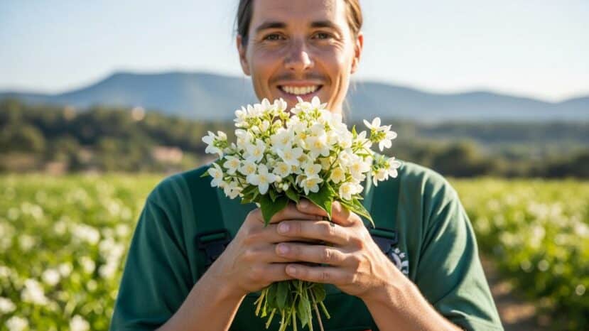 To smell flowers in situ, aim for May for roses and late summer for jasmine. What’s more, a fragrance is best appreciated unhurriedly, in a calm environment. On the other hand, respect the fields and follow the growers’ instructions.