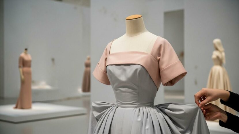 Conversation is woven into the details: a waist emphasized, a cup placed, a hem weighed. In this way, visitors understand how one couturier reads another. What’s more, this reading makes the story tangible, as each solution responds to a body constraint.