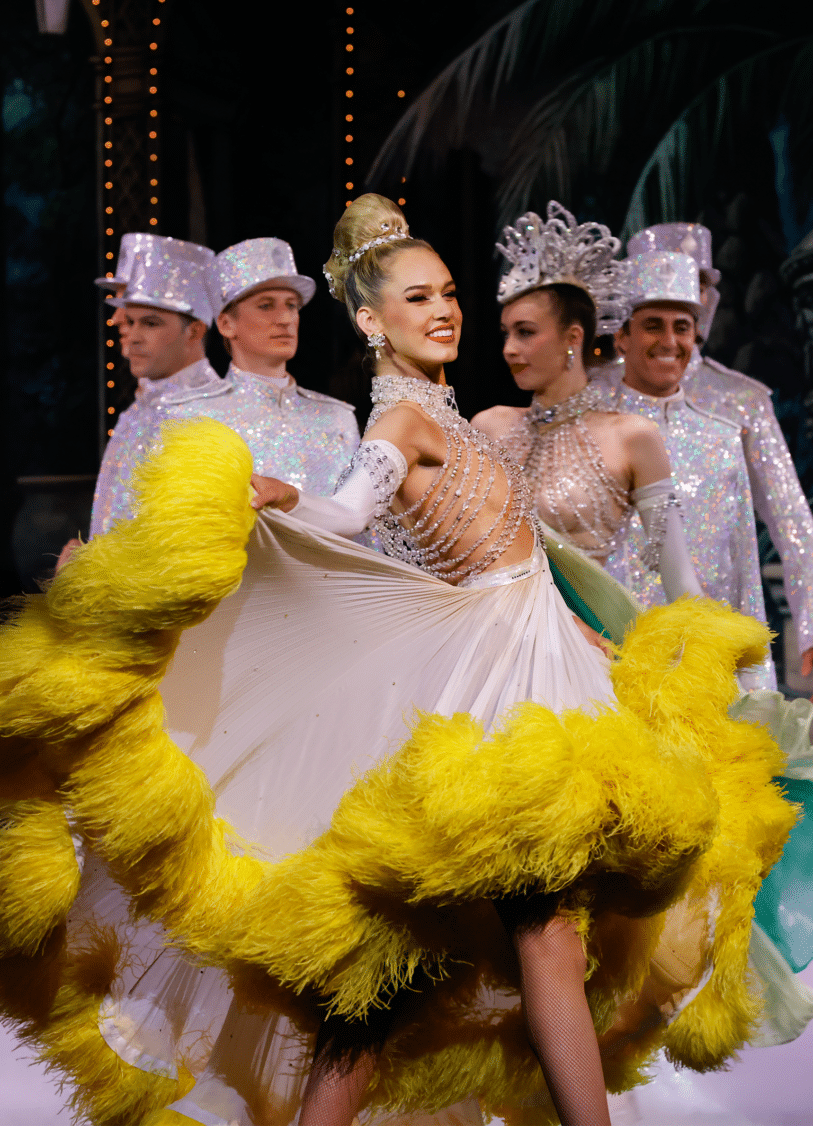 At 9pm, the lights go down and the magic happens. It’s time for Féerie, the emblematic Moulin Rouge revue. For 1 hour 45 minutes, spectators are transported into a whirlwind of feathers, rhinestones and glitter. Grandiose sets, a show brought to life by a troupe of 60 international artists. French Cancan, sumptuous costumes and original music make up a dazzling show applauded by over 600,000 spectators every year.